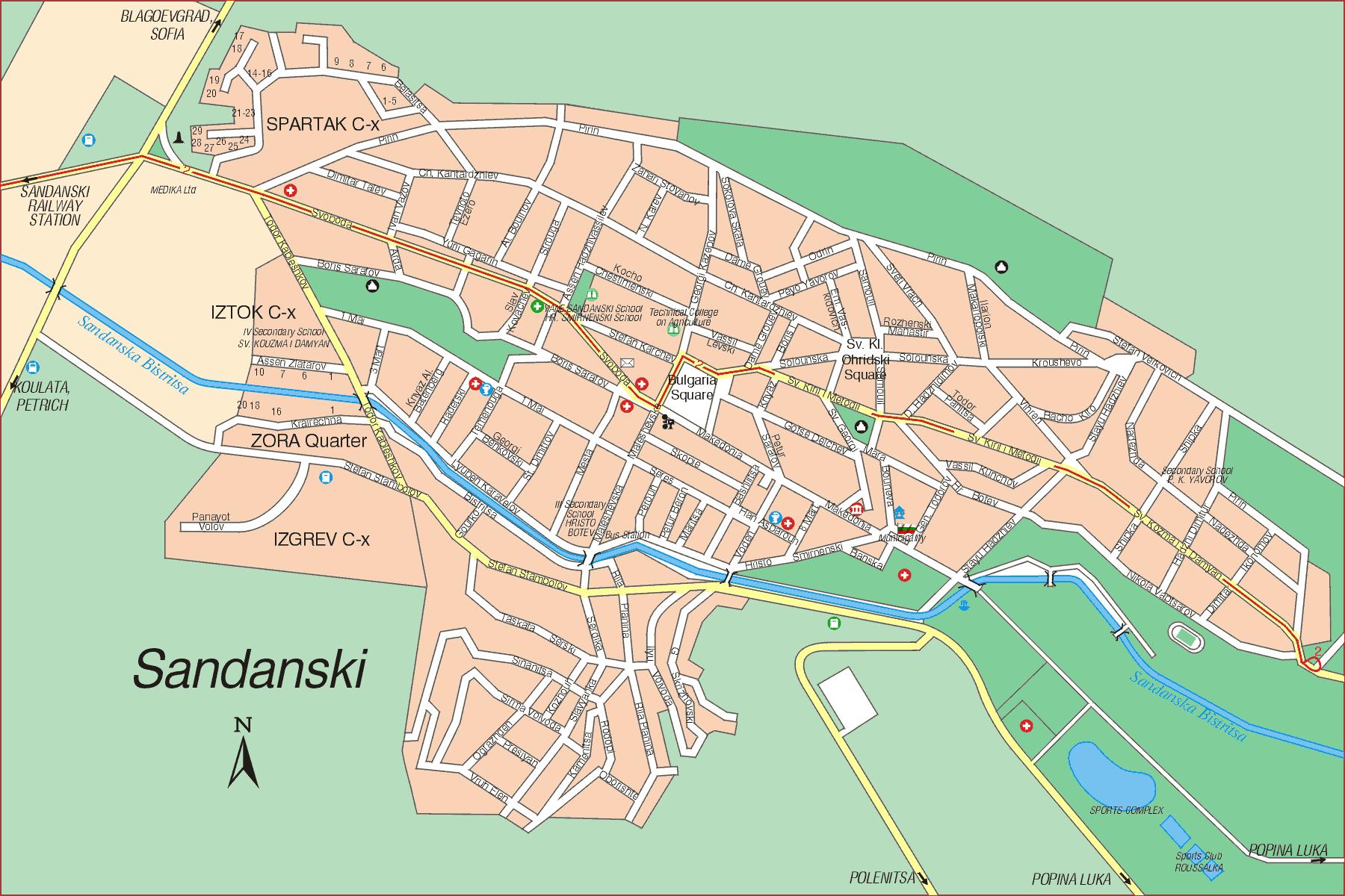 Χάρτης της σαντάνσκι της Βουλγαρίας. Sandanski, Βουλγαρία χάρτης (Ανατολική Ευρώπη - Ευρώπη) για να εκτυπώσετε. Sandanski, Βουλγαρία χάρτης (Ανατολική Ευρώπη - Ευρώπη) για να κατεβάσετε.